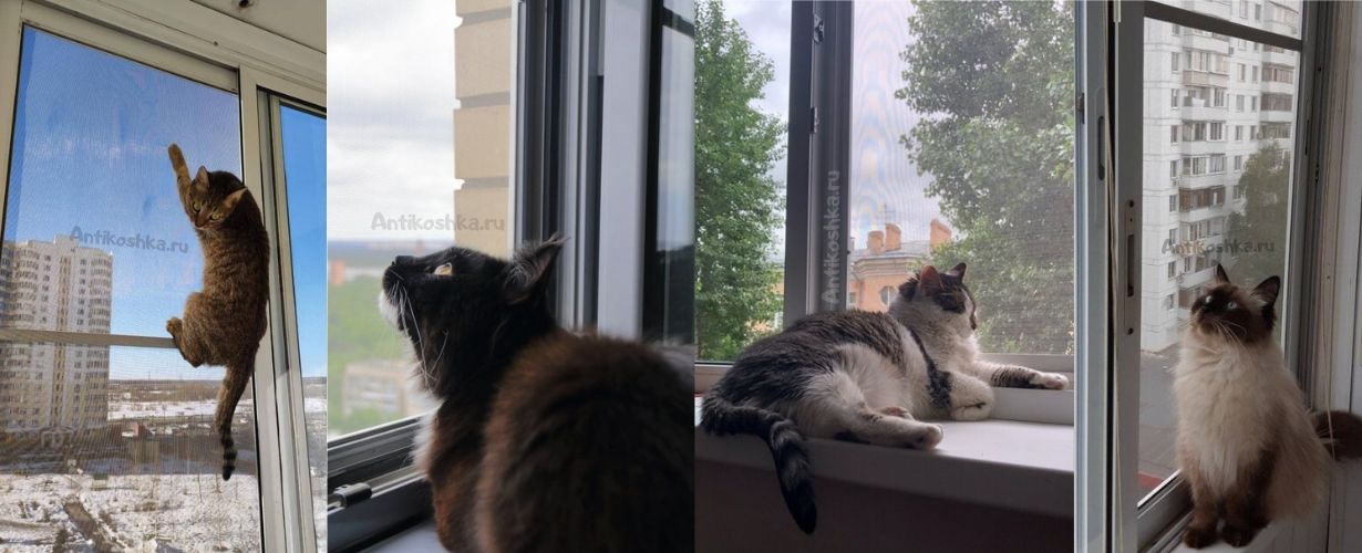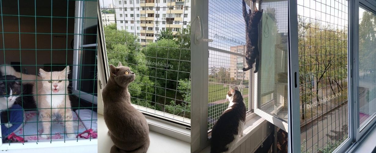 Открытые окна в квартирах, особенно в многоэтажных домах, представляют огромную опасность для домашних животных. Часто для того, чтобы обезопасить своих любимцев, их владельцы используют москитную сетку. К сожалению, обычная москитная сетка не способна обеспечить полную безопасность животных. Кроме того, что она создает риск выпадения питомца из окна, она может быть повреждена когтями животного. В целях обеспечения безопасности домашних любимцев рекомендуется использовать специальную москитную сетку антикошка.